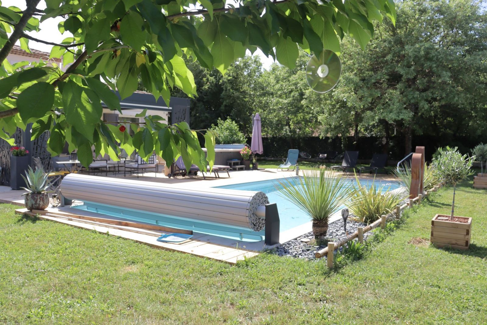 La piscine est équipée d’un volet roulant sécurisant agréé. Le jacuzzi est doté d'un couvercle pour la sécurité.